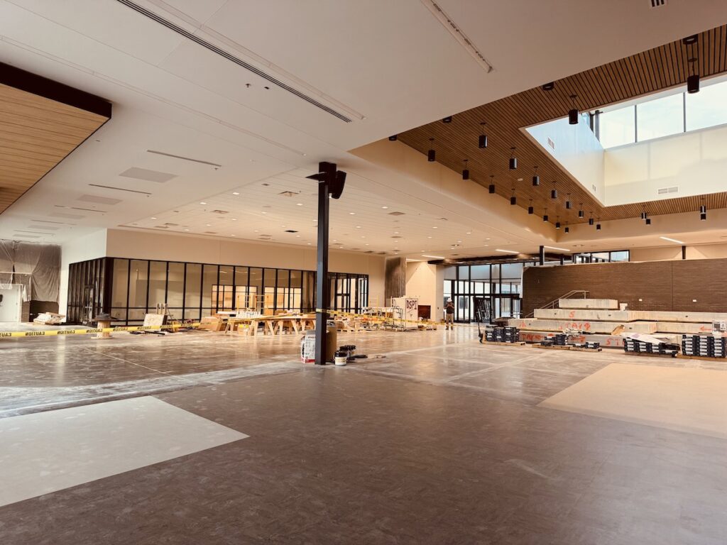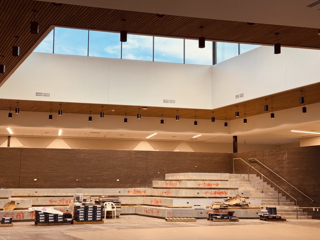 The school’s main gymnasium will seat 3,100 to 3,200 people and includes a section for students. Carver said the school will host the Region 2 basketball tournaments in 2027 and 2028.