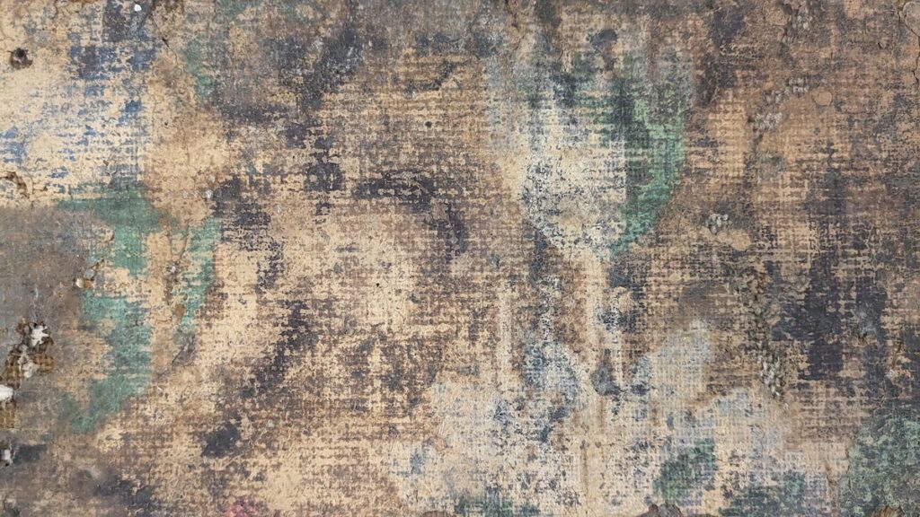 You may think of linoleum as vinyl, but vinyl didn’t come into use until the mid-20th century, after a full century of linoleum manufacture. Historic linoleum was made of a burlap or cork base, a painted design, and layers of baked linseed oil. This was very similar to floorcloth, which was made from a piece of canvas or burlap coated in layers of oil paint. The top layer often had a decorative pattern mimicking carpet or tile designs.