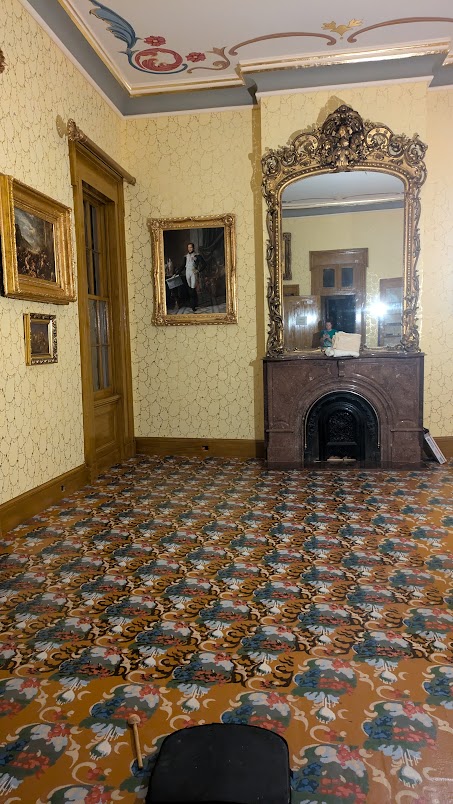 Belmont’s very worn floorcloth remnant was found beneath a later partition wall, and the Hermitage floorcloths were all retrieved from carriages. Whenever the thrifty Jacksons installed a new floorcloth in their house, they used the leftovers in their carriage floorboards. Think of them as the historic equivalent to your car’s floor mats. Luckily for history, these carriage floorcloths survived, while the larger ones in the house were discarded long ago.