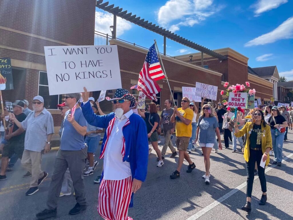 Demonstrators around the state took issue with the increased, and at times, violent immigration raids happening in places like Chicago and L.A. They say they’re concerned about Trump sending the National Guard into cities and weaponizing the U.S. Department of Justice to go after his perceived enemies. More broadly, they expressed concerns with GOP-backed policies and rhetoric around food stamps and housing insecurity.