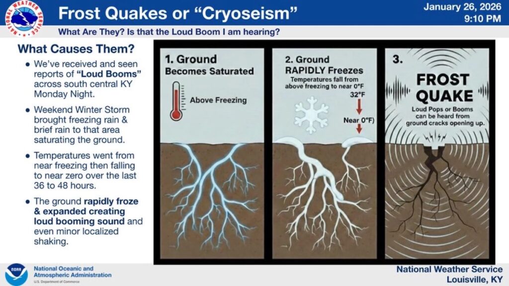 Louisville Meteorologist Marc Weinberg posted a video on social media of a frost quake happening in Southern Kentucky.